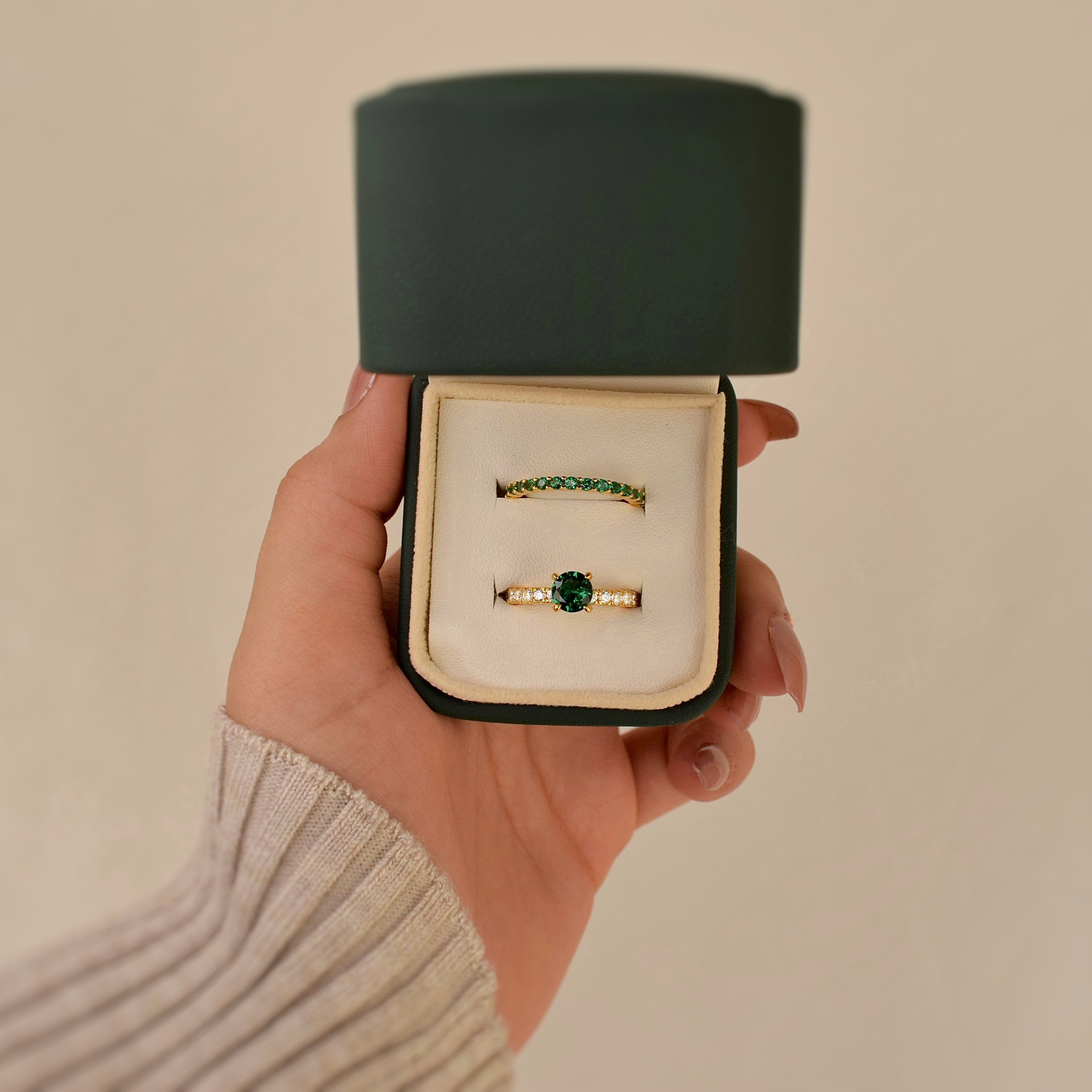 خواتم توينز بحجر اخضر داكن مطلي ذهب